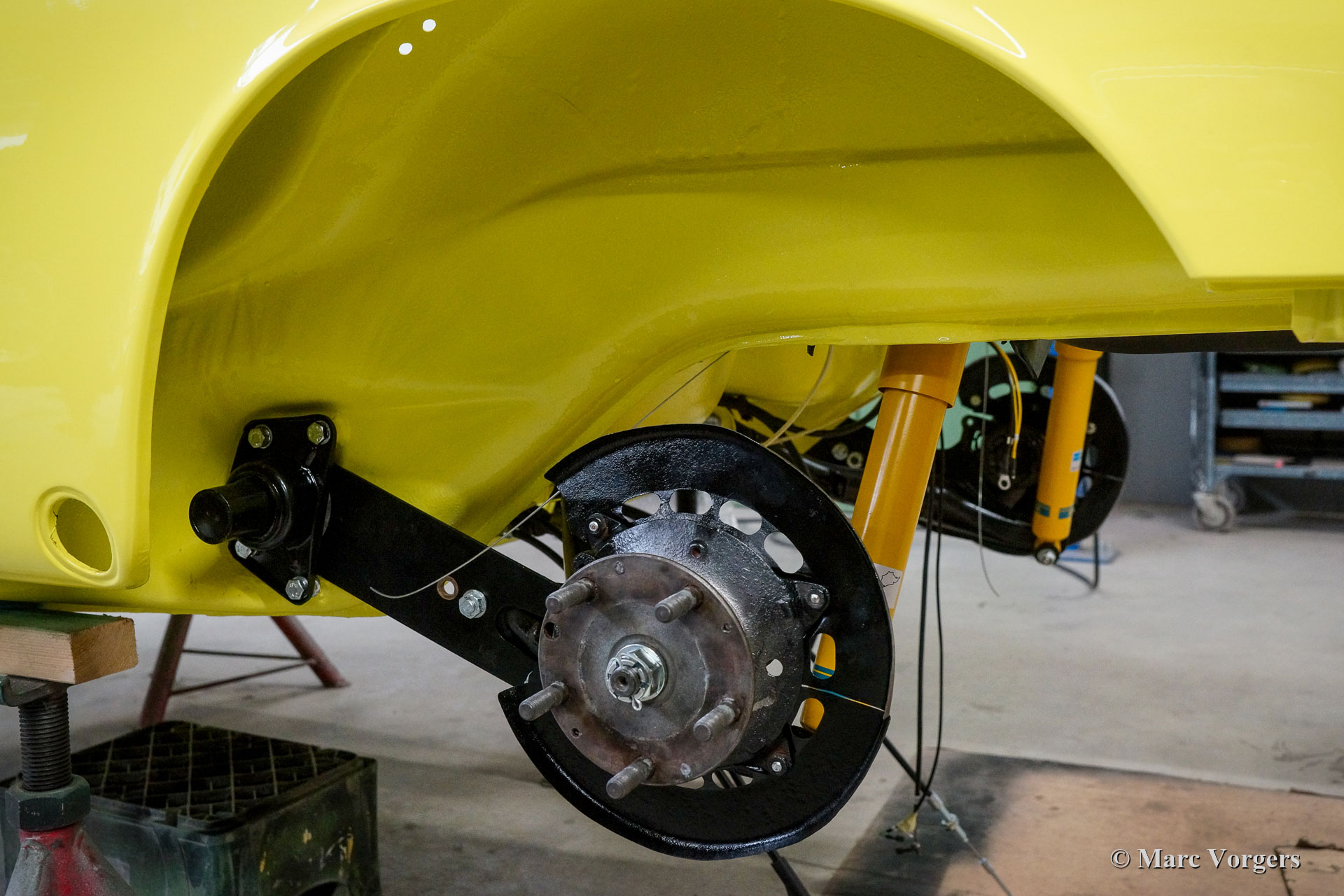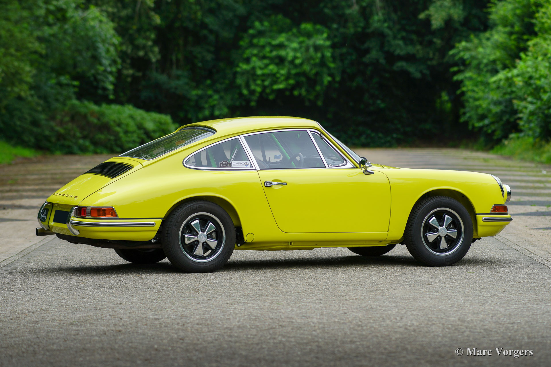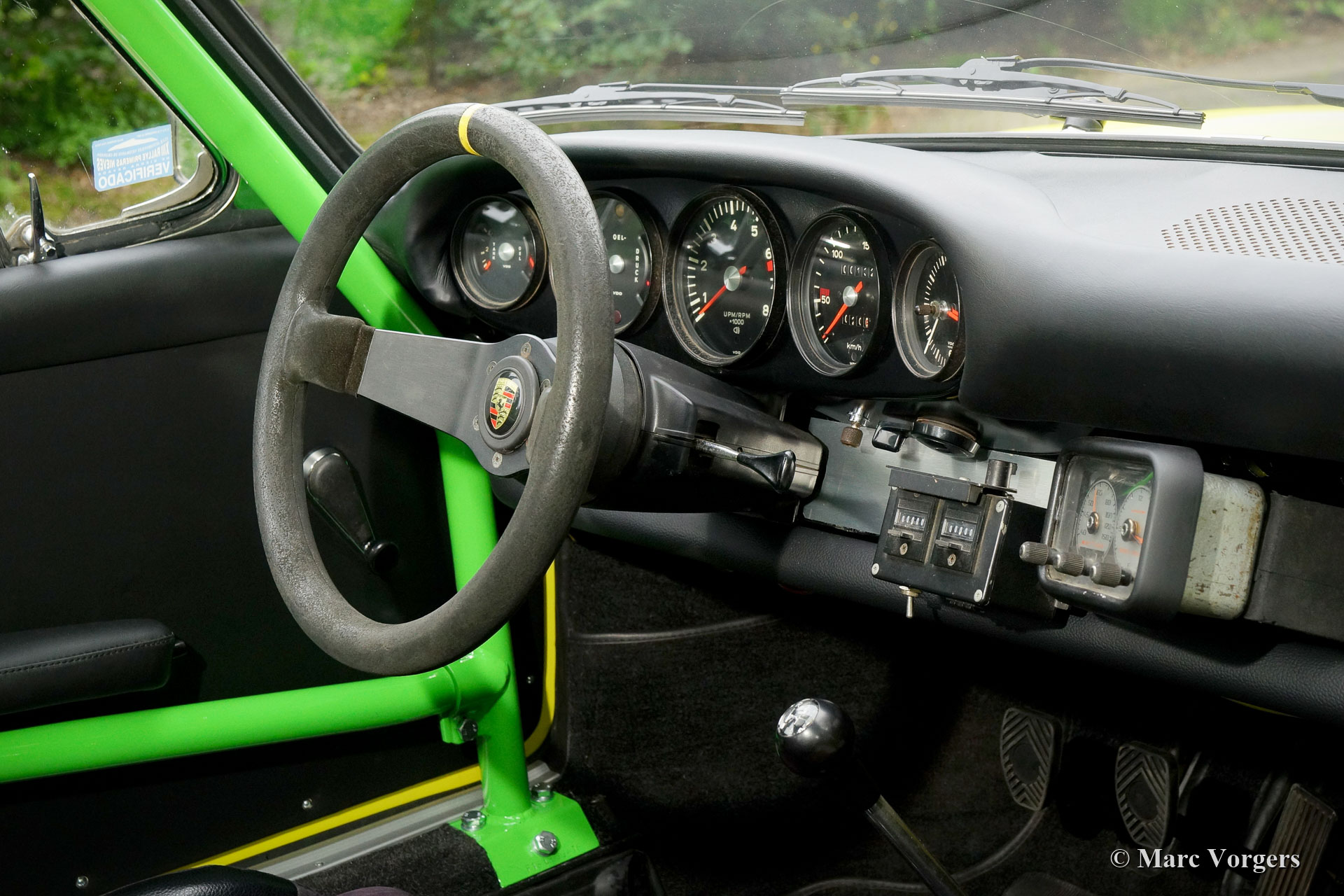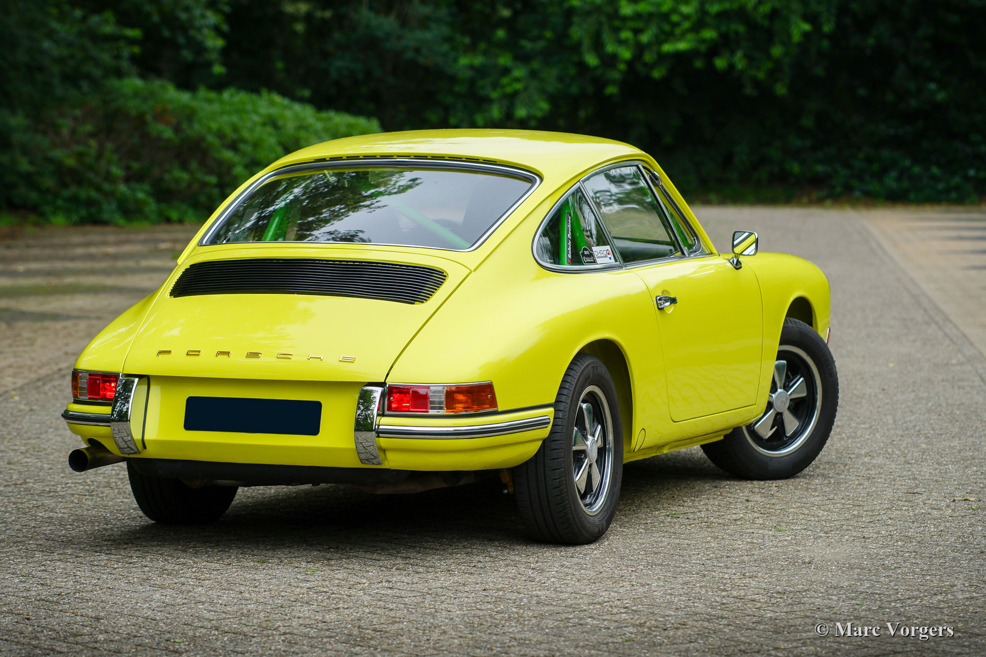 After completion of the sheet metal work the body was given a black KTL coating (primer) in a dip bath. This way, the coating covers the sheet metal inside and out, also in the seams and in the smallest hollow spaces. After that, the body was smoothened, primed and given a perfect paintjob in lemon yellow. After that, the car was rebuilt with the cleaned and refurbished original parts that were present before the restoration. Wear parts and rubbers have of course been replaced during construction. Here you have an excellent opportunity to study a Porsche 911 F-series SWB body in detail!